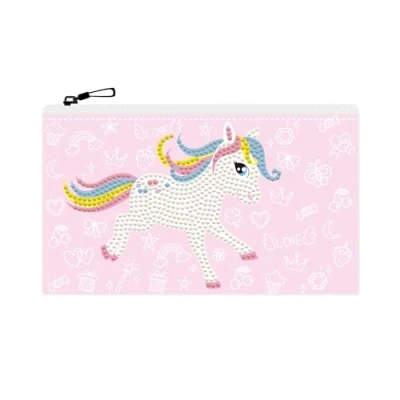 Perfect for kids: glittering colourful DIY zip bag for self-equipping. Only the original Diamond Dotz offers an extra sparkling result with the 13 facets of the diamond-like stones Craft set fans pay attention! With the coveted creative technique, just like painting by numbers, the diamond-like plastic stones are applied piece by piece. Don't they sparkle beautifully? The high-quality Diamond Dotz products are subject to the strictest quality controls and do not contain any harmful substances. Pencil case for school and home. Space for fountain pen, ruler and pens Set includes: pencil case with motif and adhesive layer, glittering plastic stones, the pen for applying the stones, sufficient wax, a craft tray and comprehensive illustrated instructions (English language not guaranteed) DOTZIES Pony Frolic Diamond Pencil Case for Crafts, Approx. 21.5 x 14 cm, school case with zip, pencil case for girls and boys from 6 years, item number: DTZ14.008, EAN: 4895225926091, Manufacturer: Needleart World (Hongkong) Ltd.