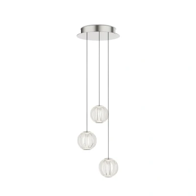 Chromed metal ceiling cap. Clear Teflon cable. Clear acrylic diffusers with cut crystal processing effect.