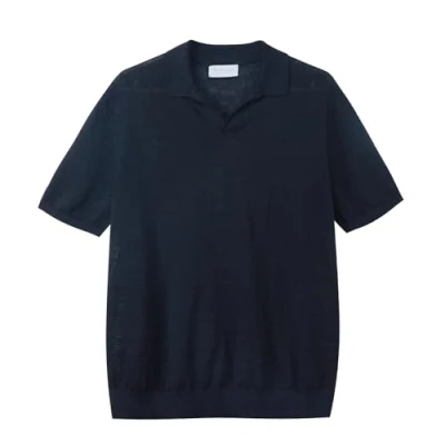 Diana Studio Men's Polo Shirt in 100% Linen, Made Italy, Black, XL