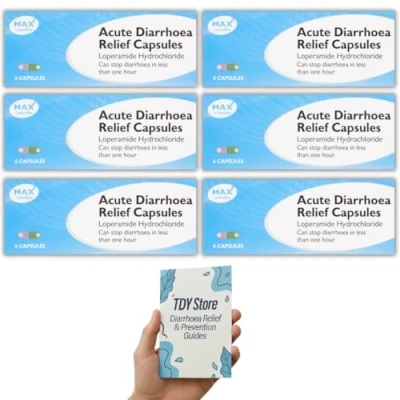 Diarrhoea Relief (6 Pack) 36 Capsules Loperamide Hydrochloride GSL, TDY Bundle Including Causes & Guides + Stool Chart Recording