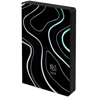 Academic Planner 2022-2023 Dark Mountain Runs from September 2022 to August 2023. Join the universe KUNNUI! 384 pages on Interior Day Page. Take one day per page in dot plot and hours from 7:00 to 20:00 hours to plan your best. Saturday and Sunday share a page. A5 size 15 x 21 cm. Its measurements are ideal for organising comfortably. Its paper is of high quality (100 grams) Soft cover in bonded leather and flexible binding. 360° opening. Painted edges in black Includes note sheets, two record tapes, monthly planner in each month and stickers.