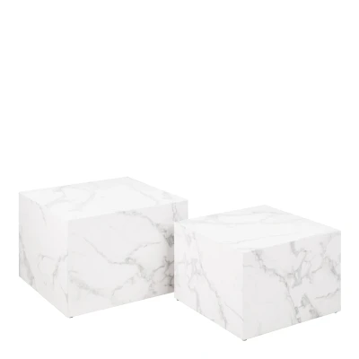 Product details Reimagine your living area with our white marble effect square coffee table set. This elegant pair, finished with a unique texture, offers a modern approach to classic luxury, perfect for any contemporary home. Modern coffee table with white marble look. Eye-catching square form. Durable surface that is easy to clean. Danish design exclusively protected for Actona. Product Specifications Dimensions: 40cm (H) x 58cm (W) x 58cm (D) Finish: Top paper white marble Carrara rough / Base paper white marble Carrara rough Range: Dice Total weight: 20.8kg Shop this and other quality bedroom furniture at Bed Kings. Explore expertly crafted bedroom furniture designed for style, comfort and everyday living, with all orders benefiting from free delivery.