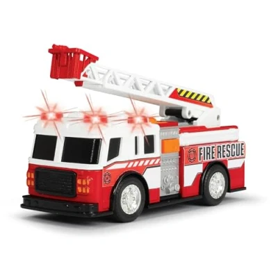 Get to the rescue work with the mini fire truck! Tatütata, tatütata - the mini fire truck from the Action Series by Dickie Toys brings the exciting world of the fire brigade directly into the playroom. Less dangerous, but even more exciting - the red fire truck with telescopic ladder offers numerous exciting possibilities for playful use. The fire truck has light and sound effects and the freewheel mechanism ensures a fast ride to the next site of operation. This gift encourages imagination and trains the motor skills of children aged 3 and up. Discover our comprehensive range of urban mini emergency vehicles!, Manufacturer: Dickie Toys