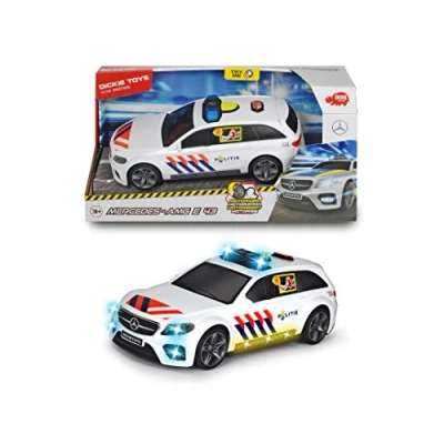 The Mercedes-AMG E 43 is one of the most popular sports models of the major car brand. Keeping order in such a Speedster is just as fun. This fun is also available in the Mercedes-AMG E 43 Police from Dickie Toys. . The detailed motorised toy car offers a number of surprises. At the touch of a button, the tailgate opens automatically and sounds a dog blabe. Light and sound effects from the police rerain the imagination and of course ensure that the gaming experience becomes even more impressive. Children over three years and older can get started immediately as the batteries are already included. Dickie Toys quality - children love our parents trust us. As an internationally renowned and certified toy manufacturer, quality and safety are our top priority, Manufacturer: Dickie Toys GmbH