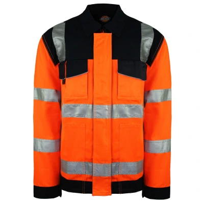 Incredibly popular in mainland Europe, the Dickies Industry clothing range now includes a variety of high visiblity options. This Industry Hi-Vis Jacket meets class 2 specifications, whilst maintaining the two tone design & features of the traditional Dickies Industry clothing range. Full length storm flap 2 side pockets Mobile phone pocket Action back pleats YKK zip Extra bar tacks for added strength