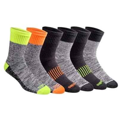Dickies Men's Dri tech Moisture Control Mid Crew Socks, Available in M XL (6, 12, Comfort Length Hi vis Assorted (6 Pairs), Large (Pack of 6)