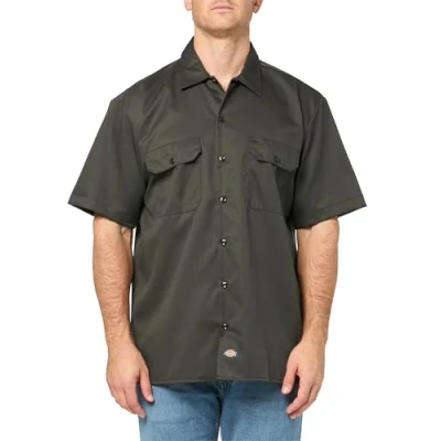 Dickies Men's Work Shirt Short Sleeved Workwear, Olive Green, XXX Large