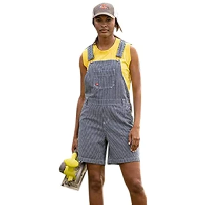 Dickies Women's 7in Bib Shortalls, Rinsed Hickory Stripe, XS