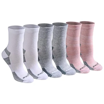 Dickies Women's Dri tech Advanced Moisture Wicking Mid Crew Socks, Available in M l (6,12, White Assorted (6 Pairs), Medium (Pack of 6)