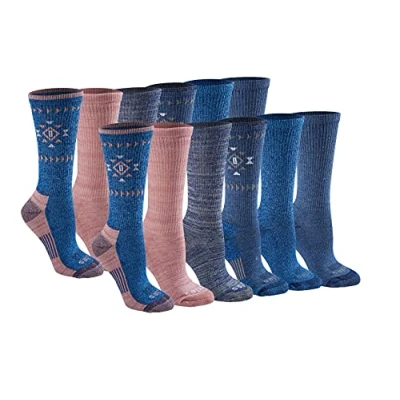 Dickies Women's Dri tech Fashion Moisture Control Crew Socks, Available in S XL (5, 6, Denim Tribal (12 Pairs), M (Pack of 24)
