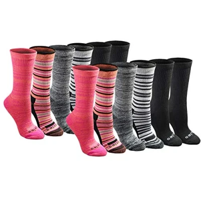 Dickies Women's Dri tech Fashion Moisture Control Crew Socks, Available in S XL (5, 6, Stripe (12 Pairs), M (Pack of 24)