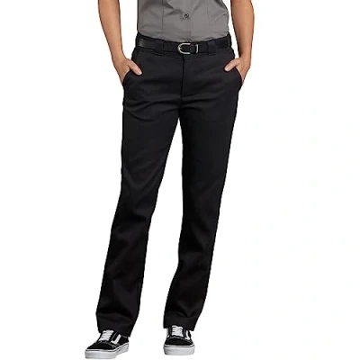 Comfort and convenience: slim fit, straight leg pants made with an 8.3-ounce stretch twill for ease of movement and comfort that also resists wrinkles, releases stains and wicks moisture to keep you clean and dry while you move throughout your day Classic work wear: these stylish and durable straight leg pants feature the Dickies 874 original work pant design, modified for a comfortable and slim-fit look for women. They feature a tough polyester/cotton twill that resists wrinkles and stains Quality and functionality: our pants are made with quality, comfort and value in mind. Our work wear products have distinctive designs with attention to detail on every garment, including tunnel belt loops, roomy pockets, sturdy zippers and buttons Trusted name: the world's leading performance work wear brand, Dickies has been making quality work wear and apparel since 1922. All Dickies clothing offers superior craftsmanship and unmatched value to deliver style and comfort every day We make jeans, outerwear, work uniform, sports shirts, kids wear, hats, socks, underwear, boots, gloves, belts, eyewear, backpacks, bags and much more. Refer to size chart