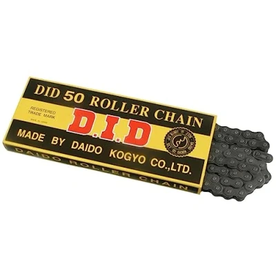 Amazon Chain (no rings) Tensile strength: approximately 3150 kg stahlfarbene inner and outer flaps Open Chain with Clip Lock D.I.D Standard chains feature solid rollers and shot-peened parts for reduced friction. Manufactured from a special alloy steel, Made in Japan.