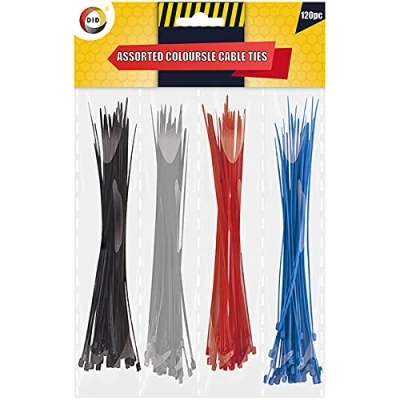 DID Cable Ties Assorted Colours, 120 Pack, 2mm x 150mm