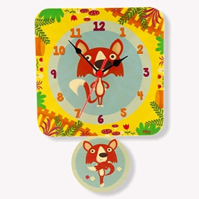 Pendulum clock by wall for the bedroom, protagonists simpatca a pair of small animals immersed in the woods Made of birch wood with pendulum movement quartz dim. 21 x 30.5 x 5. Battery power (battery not included). The clock to fix to the wall is a gift idea useful to decorate and furnish the nursery The children will be attracted by the movement of this cute clock-pendulum and you have fun while learning to read the hours., Manufacturer: DIDA