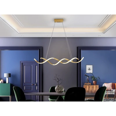 Lamp made of metal and aluminium, bright golden finish. Opal silicone diffuser. Adjustable length. 33W LED, 2100 lm, 3000K