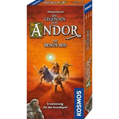 Legends for new adventures and exciting stories that make the game even more diverse. New characters with unique abilities to defeat the opponents and save the land of Andor. More action and challenges with additional event cards and variants that add even more excitement and challenges. The bonus box can only be played in combination with the basic game "The Legends of Andor", expands the game with new content and allows you to enjoy the gaming experience even more intensely. Board game for 2-4 people from 10 years, Manufacturer: KOSMOS