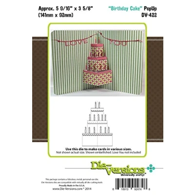 PopUp - Birthday Cake Die Use this die to make cards in various sizes. Top quality thin metal dies. Stunning die - create a beautiful card using this die! 5 9/16" x 3 5/8" (141mm x 92 mm)