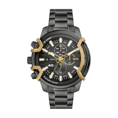 48 mm case, 22 mm lug width, mineral crystal, Quartz movement with chronograph analog display, imported Round stainless steel case, with a gray dial Gunmetal, stainless steel bracelet Water resistant up to 50 m: Wearable while swimming in shallow water