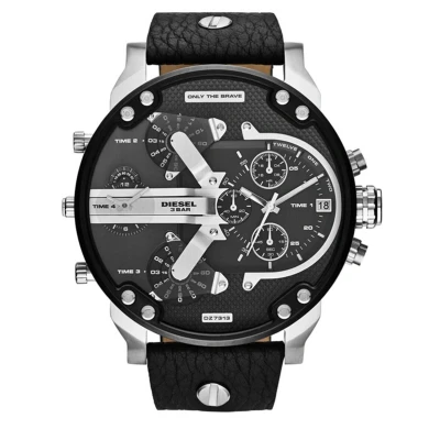 Diesel DZ7313 DADDY 2.0 watch. Oversized watch has a stainless steel case and is fitted with an analogue chronograph quartz movement. It is complete with a genuine leather strap and has a black dial. EAN 4053858270855