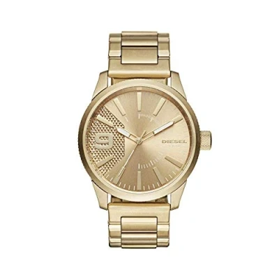 DIESEL men watch - Round stainless steel case (diam. 53 mm) in polished and brushed gold finishing - 5 ATM water pressure resistance construction Stainless steel bracelet in polished and brushed gold finishing - Fold over clasp The design of the Diesel boxes is always different and changes with each season Gold-tone dial with pattern, gold-tone indexes and arabic number at 9 o'clock - 3 hand movement - Gold-tone and luminous hands - Mineral glass Packed in DIESEL gift box Material: Stainless Steel Color: Gold Water resistant up to 50m: Wearable while swimming in shallow water