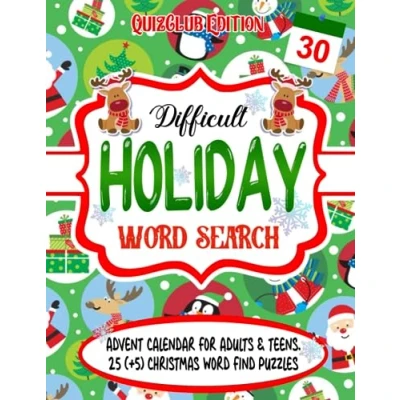Difficult Holiday Word Search: Advent Calendar for Adults & Teens. 25 (+5) Christmas Find Puzzles