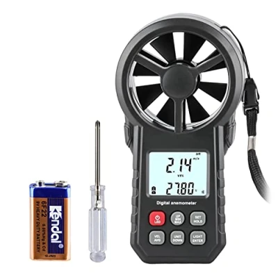 đ©ăMULTIFUNCTION WIND METERăâ: The anemometer with bluetooth function is designed to measure wind speed (0-30 m/s, 0-5860 ft/min, 0-55 knots, 0-90 km/hr, 0-65 mph) with 12 level beaufort scales, and detect air temperature ( 14°F and 113°F), easy to switch â/â units by press the button with no tools, support wind chill indication, display Max/ Average/ Current air velocity on LCD screen in real time, more convenient than 2 buttons anemometer. đăEASY TO INSTALL BATTERY & USEăâRemove off the yellow rubber protector cover, then open the battery door, it's more easier than other wind meter gauge. Put a 9V battery (included), turn on windspeed anemometer by press âModeâ for 2s to measure wind and analyze environment to do activities. đȘăBACKLIGHT& AUTO/MANUAL SHUTDOWNăâPress any keys to active the wind anemometerâs backlight last for 12 seconds, convenient to read at dark place, press âModeâ + âSETâ simultaneously to turn off the wind meter, or no operation for 14 minutes it will auto shutoff. đăMULTIPURPOSE WIND DETECTORăâThis digital wind speed anemometer is perfect for industrial and home purposes, like measuring speed of HVAC velometer, air value testing, air temperature and humidity testing, air conditioner and temperature of CPU. The mini anemometer for sailing, shooting, hang-gliding, drone wind speed test, power and manufacture industrial. đăHANDHELD ANEMOMETERăâWind speed thermometer is compact and light design, small enough to put into pockets, easy to carry and operation. Hand size wind speed tester with simple but detailed manual. Please donât hesitate to contact us if you meet any question.
