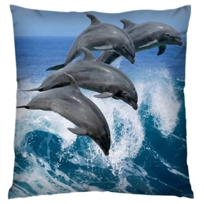 Digital Printed Cushion Covers 45 x 45cm Realistic Animal Print Strong Nylon Zip Washable Decorative Throw Square Pillow Cover [Dolphin]