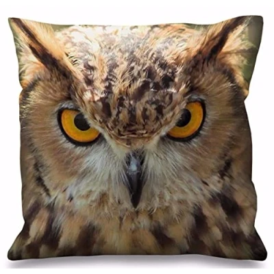 Digital Printed Cushion Covers 45 x 45cm Realistic Animal Print Strong Nylon Zip Washable Decorative Throw Square Pillow Cover [Owl]