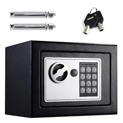 Digital Safe Box Solid Steel Construction Security for Jewelry Cash Valuables Documents Electronic Keypad with Backup Keys Wall Floor Mounted 17x23x17cm 4.6L, Black