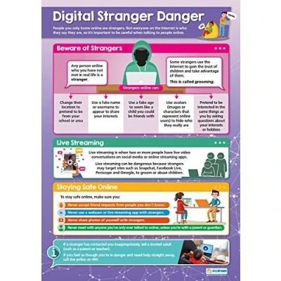 Digital Stranger Danger Online Safety Posters Gloss Paper measuring 850mm x 594mm (A1) Internet Class Education Charts by Daydream