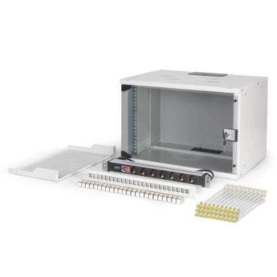 Maximum design freedom: thanks to unassembled delivery, individual positioning of all 19" components is possible Includes SOHO PRO wall housing, 7U, 370 x 540 x 400 mm, unmounted (DN-49202) Includes shelf, 1U (DN-97609) Includes power strip, 1U, 7 x earthing contact, with switch (DN-95402) - Includes modular patch panel, 24-port (DN-91410) Includes 24 x keystone module, CAT 6A, shielded (DN-93615-24) - Includes 30 x patch cables, CAT 6A, S/FTP, 0.25 m