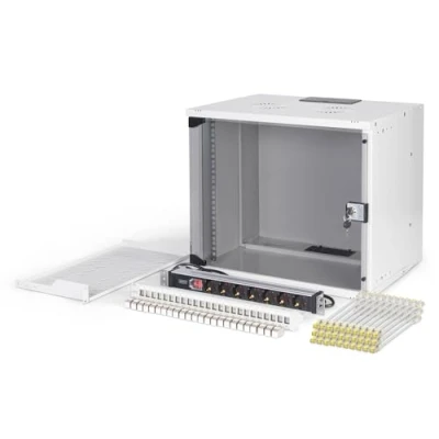 Maximum design freedom: thanks to unassembled delivery, individual positioning of all 19" components is possible Includes SOHO PRO wall housing, 9U, 460 x 540 x 400 mm, unmounted (DN-49204) Includes shelf, 1U (DN-97609) Includes power strip, 1U, 7 x earthing contact, with switch (DN-95402) - Includes modular patch panel, 24-port (DN-91410) Includes 24 x keystone module, CAT 6A, shielded (DN-93615-24) - Includes 30 x patch cables, CAT 6A, S/FTP, 0.25 m