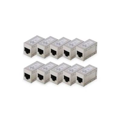 Digitus at AG 8/8 C6S RJ45 Coupler Cat 6 Pack of 10 LAN Cable Extension Cat6 Network Connector PoE Compatible Modular Coupling For Switch, DSL, Modem, Router, PC Silver