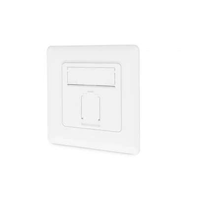 DIGITUS Cat 6A connection box 1 port RJ45 four sided feed flush mounted network socket 28 mm installation depth design compatible pure white