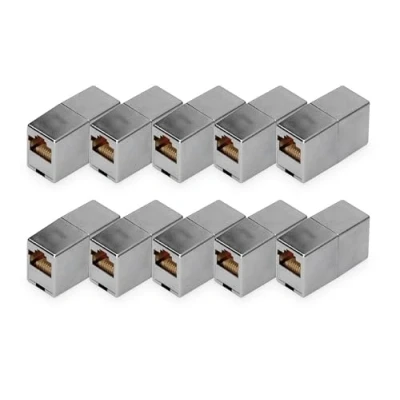 Digitus DN 93901 RJ45 Coupler Cat 5e Pack of 10 LAN Cable Extension Cat5e Network Connector PoE Compatible Modular Coupling For Switch, DSL, Modem, Router, PC Silver