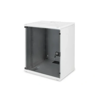 DIGITUS network cabinet 19 inch rack 12 U Unassembled Wall mounting 400 mm depth Load capacity 60 kg Glass door SOHO series Grey