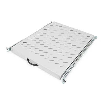 Versatile storage: The 1U shelf offers space for devices such as routers, modems, AV accessories, mini PCs, NUCs, KVM switches, power supply units and NAS that do not have their own mounting option in 19-inch format Simple installation: The server shelf is attached to the front and rear of the 19" profile rails in the network enclosure and only requires one height unit (1 U) Convenient access: Thanks to the included handle, the shelf can be pulled out of the IT rack like a drawer, allowing easy access and efficient maintenance of network devices Flexibly adjustable: The mounting rails of the rack compartment can be variably adjusted in depth from 355 mm to 680 mm Precise dimensions: The outer dimensions of the entire shelf are 40 x 484 x 568 mm (HxWxD) - the rack shelf fits into DIGITUS 19-inch network cabinets from a depth of 800 mm Optimized ventilation: The perforation of the 19-inch shelf enables unhindered air circulation in the server enclosure and thus contributes to cooling the devices Robust and resilient: The 19-inch shelf is made of sheet steel and supports a load of up to 25 kg - screws, cage nuts and washers are included in the scope of delivery