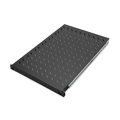 Versatile storage: The 1U shelf offers space for devices such as routers, modems, AV accessories, mini PCs, NUCs, KVM switches, power supply units and NAS that do not have their own mounting option in 19-inch format Simple installation: The server shelf is attached to the front and rear of the 19" profile rails in the network enclosure and only requires one height unit (1 U) Convenient access: Thanks to the included handle, the shelf can be pulled out of the IT rack like a drawer, allowing easy access and efficient maintenance of network devices Flexibly adjustable: The mounting rails of the rack compartment can be variably adjusted in depth from 720 mm to 770 mm Precise dimensions: The outer dimensions of the entire shelf are 40 x 483 x 720 mm (HxWxD) - the rack shelf fits into DIGITUS 19-inch network cabinets from a depth of 1000 mm Optimized ventilation: The perforation of the 19-inch shelf enables unhindered air circulation in the server enclosure and thus contributes to cooling the devices Robust and resilient: The 19-inch shelf is made of high-quality sheet steel and supports a load of up to 65 kg - screws, cage nuts and washers are included in the scope of delivery