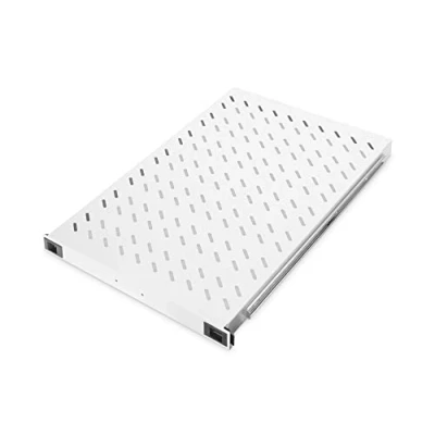 Versatile storage: The 1U shelf offers space for devices such as routers, modems, AV accessories, mini PCs, NUCs, KVM switches, power supply units and NAS that do not have their own mounting option in 19-inch format Simple installation: The server shelf is attached to the front and rear of the 19" profile rails in the network enclosure and only requires one height unit (1 U) Convenient access: Thanks to the included handle, the shelf can be pulled out of the IT rack like a drawer, allowing easy access and efficient maintenance of network devices Flexibly adjustable: The mounting rails of the rack compartment can be variably adjusted in depth from 720 mm to 770 mm Precise dimensions: The outer dimensions of the entire shelf are 40 x 483 x 720 mm (HxWxD) - the rack shelf fits into DIGITUS 19-inch network cabinets from a depth of 1000 mm Optimized ventilation: The perforation of the 19-inch shelf enables unhindered air circulation in the server enclosure and thus contributes to cooling the devices Robust and resilient: The 19-inch shelf is made of high-quality sheet steel and supports a load of up to 65 kg - screws, cage nuts and washers are included in the scope of delivery