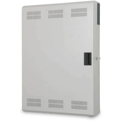 Slim design which is perfect for small home automations 2x 3U usable mounting areas, which can be turned by 100° Lockable front door with air ventilation slots