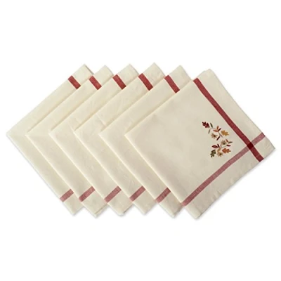 PACK OF SIX Napkins measures 20x20" EASY CARE 100% cotton, machine washable, gentle cycle, tumble dry low. Low iron if needed. ADDS A FINISHING TOUCH Small accents like our napkins provide a subtle & sophisticated impact to your dining display. ENHANCE YOUR HOME Crafted from all natural fibers, our napkins can be set left of charger or fold elegantly & place center of dinnerware for tabletop sure to impress Color fast for durability. FOR MORE DÉCOR DII offers delightful home products including themed napkin rings, placemats table runners and tablecloths. Click the DII link at the top of the page to explore our collections or search "DII Table Tops"..100% Cotton