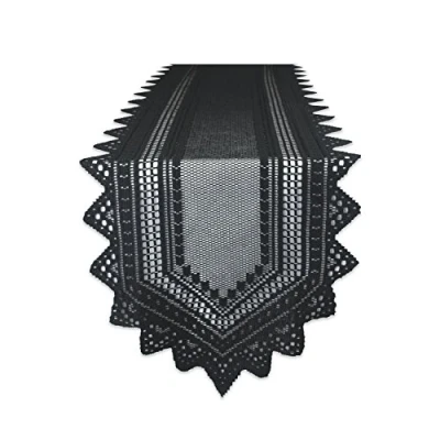 FOR YOUR SPOOKY TABLE: This 100% polyester festive table runner measures 14x72" in size, appropriate for a table that can fit 4-6 people, ghouls, or goblins ADD A CREEPY FINISHING TOUCH: This lace table runner is the perfect addition to decorate your tabletop for Halloween parties; The lace material adds a elegant and homely look to your table setting while providing haunting ambiance ENHANCE YOUR HAUNTED HOUSE: Use our table runner to decorate for a dark and gloomy Halloween tabletop sure to delight, and terrify, both grown ups and trick or treaters CARE INSTRUCTIONS: Machine wash cold on gentle cycle; Tumble dry low; Low iron if needed MAKE IT A DII HALLOWEEN: In addition to looking great on its own, you can also pair this table runner with DII Halloween napkins, napkin rings, tablecloths, placemats, and more; search "DII Halloween" to explore the full collection