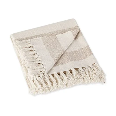 DII Cabana Stripe Woven Throw, Cotton, Stone, 50x60