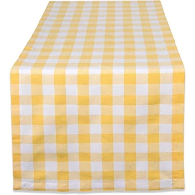 DII Checkered Tabletop Collection 100% Cotton, Machine Washable, Table Runner, 14x72, Yellow