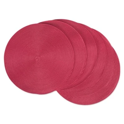 DII Classic Woven Round Placemat for Indoor/Outdoor Table Settings, Everyday Use, Family Dinners or Holidays, 15" Diameter, Tango Red, 6 Count