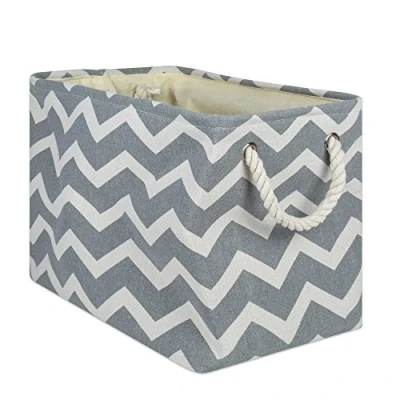 DII Collapsible Polyester Storage Basket or Bin with Durable Cotton Handles, Home Organizer Solution for Office, Bedroom Closet, Toys, & Laundry, 17.75x12x15, Chevron Gray