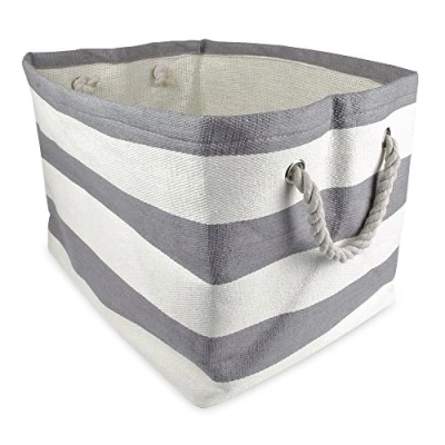 DII Durable Woven Striped Storage Bin Collapsible with Soft Rope Handles Reinforced Metal Grommets, Small, 11x10x9", Gray