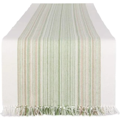 DII Fringed Stripe Tabletop, Table Runner, Cotton, Thyme, 14x72