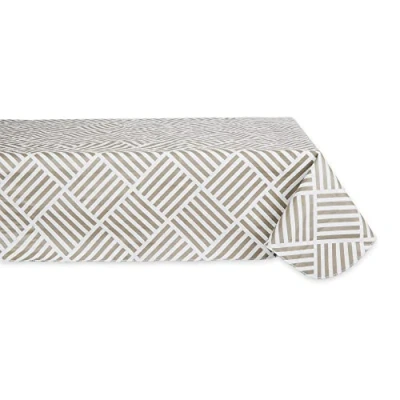DII Indoor/Outdoor Vinyl Tabletop Collection Grid Pattern, Flannel Backed Tablecloth, Rectangle, 60x102, Stone
